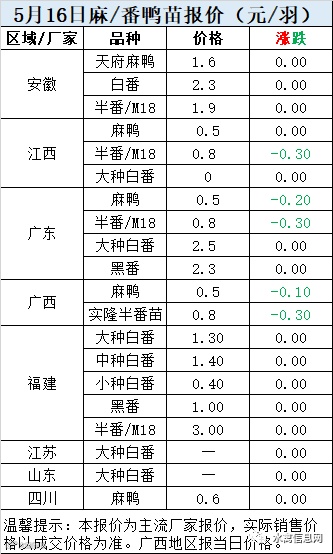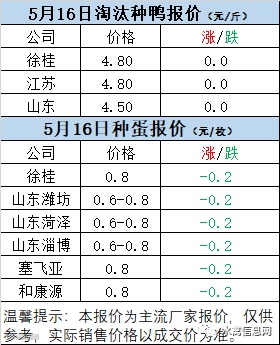 一、5月15日晚至5月16日 白羽肉鸭报价
