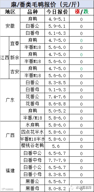 明日麻鸭苗报价下滑0.1-0.2/羽。半番鸭苗继续下滑0.3元/羽。