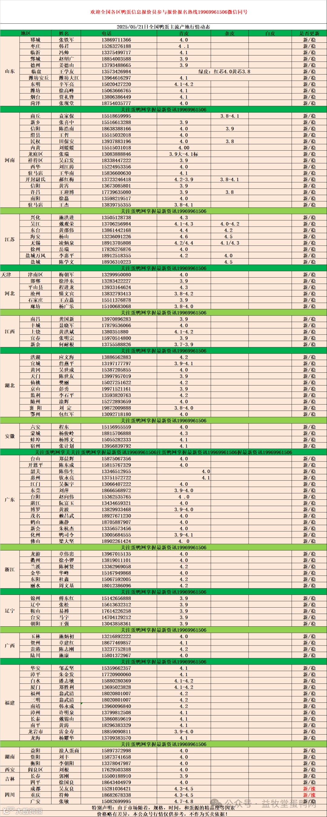 淘汰鸭:10.5-9.5元/斤淘汰鸭价格受毛色,体重,品种等影响的变化较快。