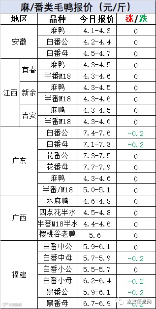 明日麻鸭苗报价稳定,半番鸭苗稳定。