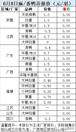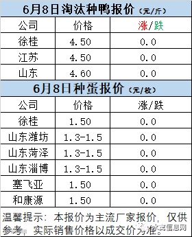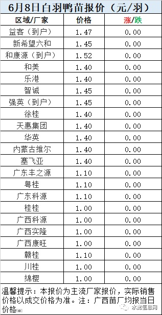 一、6月7日晚至6月8日 白羽肉鸭报价