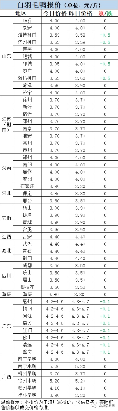 1:近两日北方严重高温,疾病又多,大鸭养殖难度极大,急宰棚越来越多,连续下滑后,今晚北方毛鸭报价整体持稳,局部仍有零星下滑。
