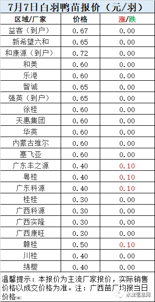 一、7月6日晚至7月7日 白羽肉鸭报价