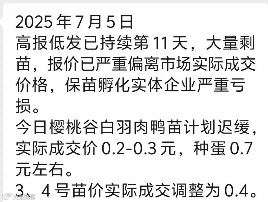 | 一:25年7月7日北方白羽鸭苗报价(元/羽) | ||