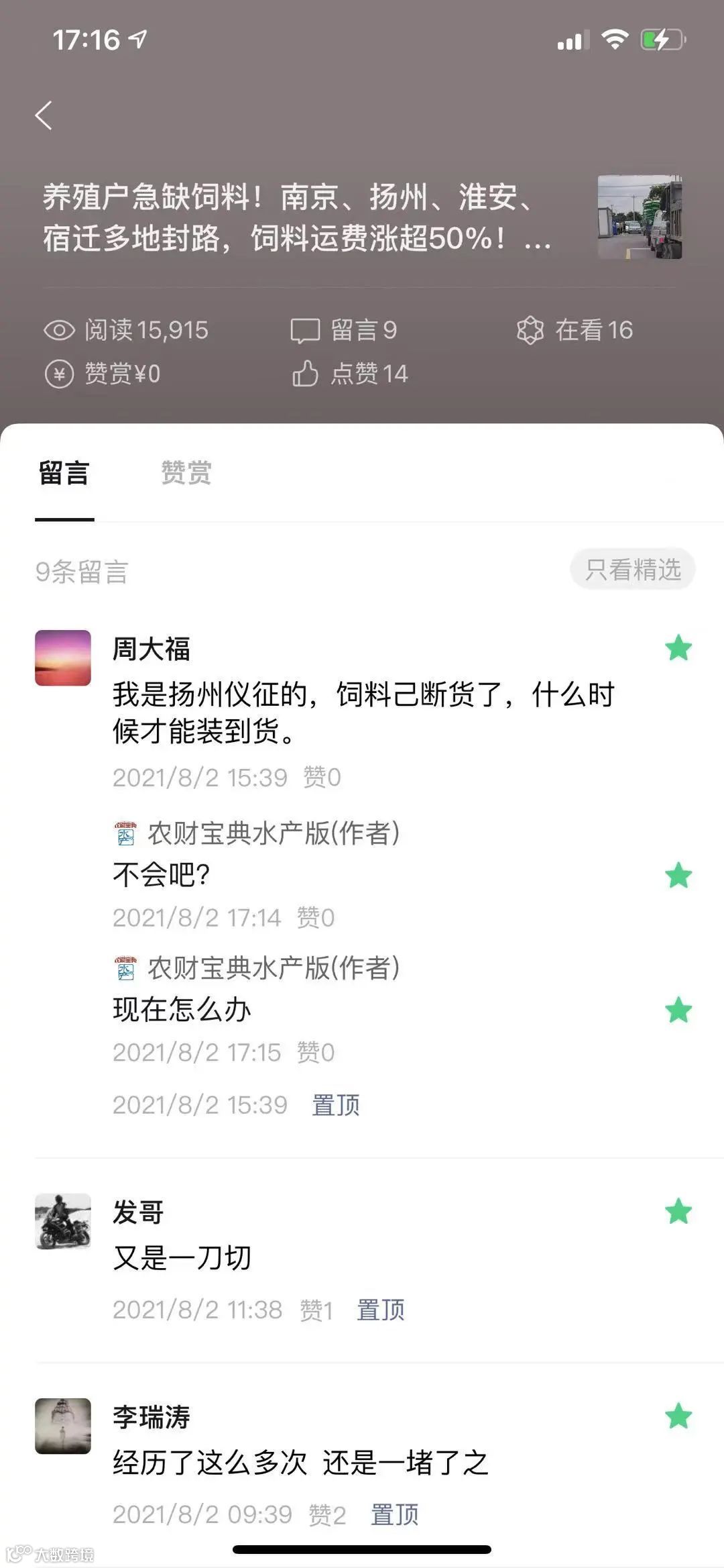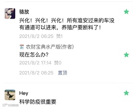业内人士在昨日农财宝典水产版推文下的留言。