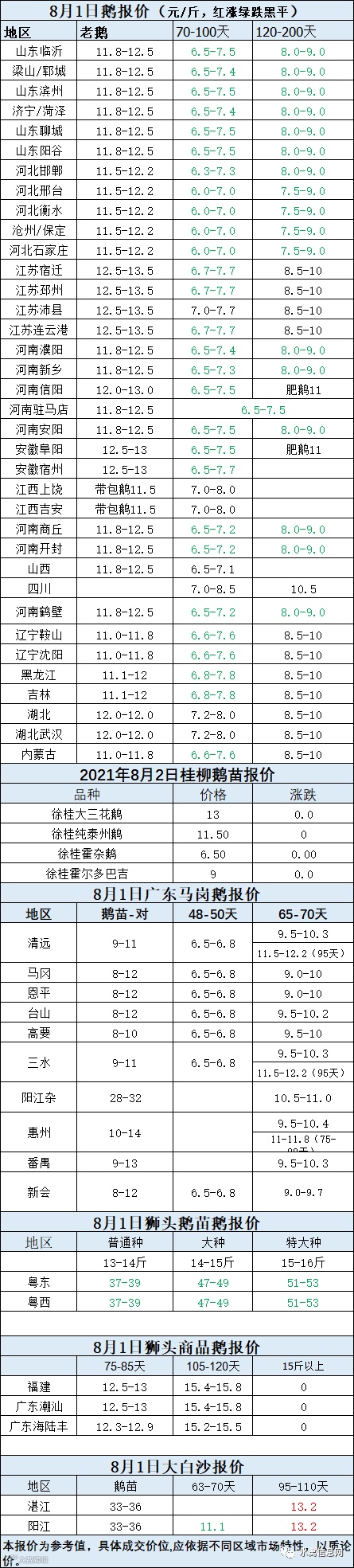 2021年8月01日鹅种蛋价格(元/枚)停报