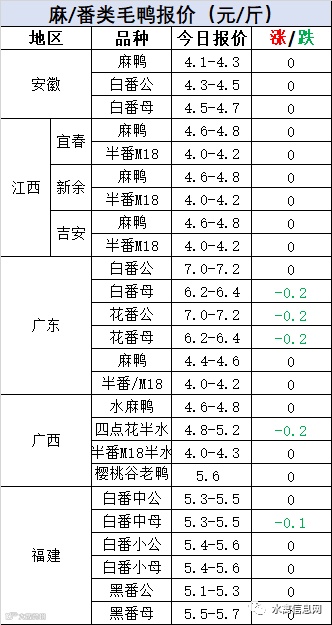 明日麻鸭苗报价上涨0.3元/羽,半番鸭苗报价稳定。