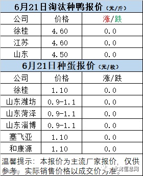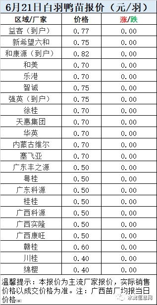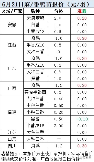 一、6月21日白羽鸭苗报价