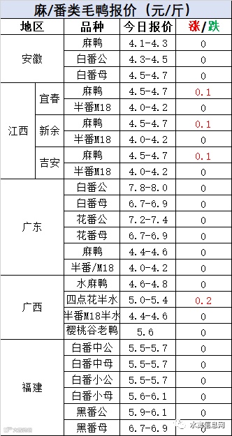 明日麻鸭苗报价上涨0.2元/羽,半番鸭苗报价下滑0.3元/羽。