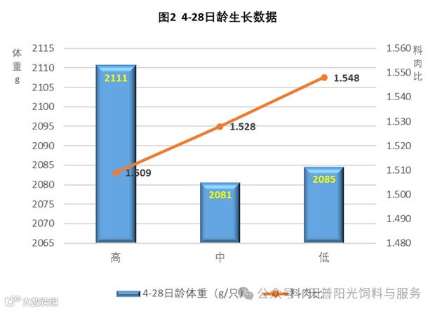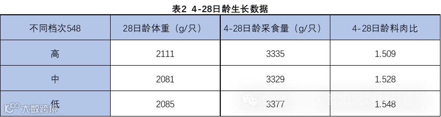 我们针对小白条鸭这块市场,以4-28日龄的樱桃谷鸭为试验对象,对比了高、中、低三档548饲料对生长性能的影响,结果如下。