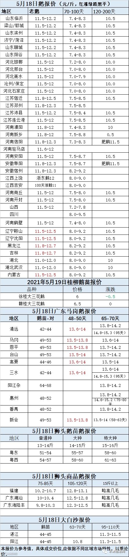 2021年5月18日商品鹅蛋价格(元/斤)