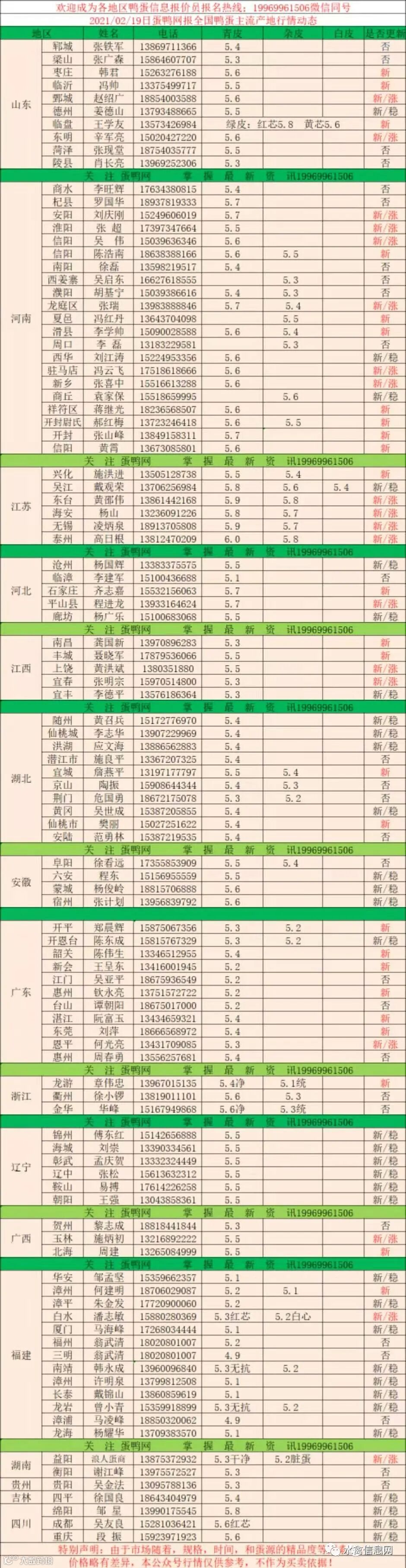 【鸭蛋价格】2021年2月19日鸭蛋报价:局部上涨!