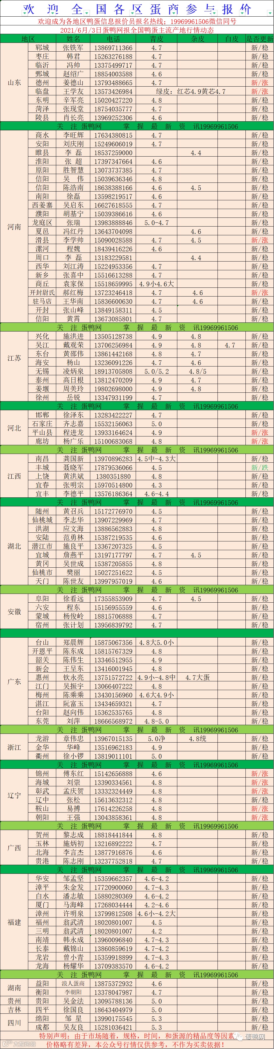 淘汰鸭:活禽市场11元/斤左右。屠宰厂收购价8.5元/斤左右,淘汰鸭价格受毛色,体重,品种等影响的变化较快。