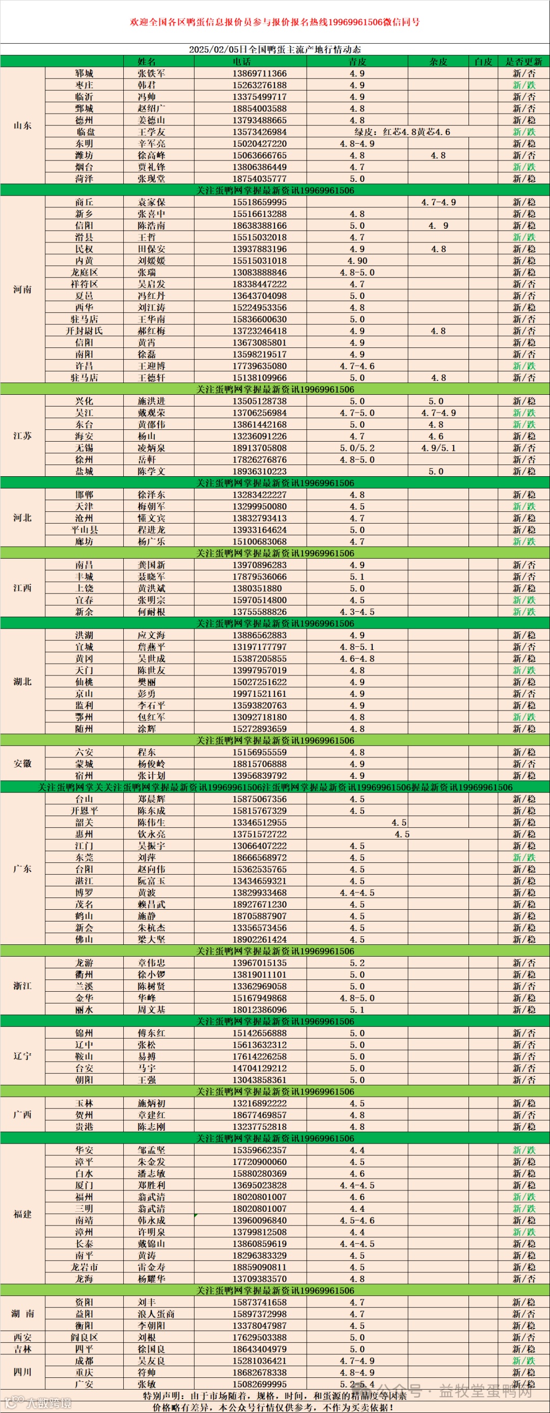 2025年2月5日商品鸭蛋报价 益牧堂水禽信息