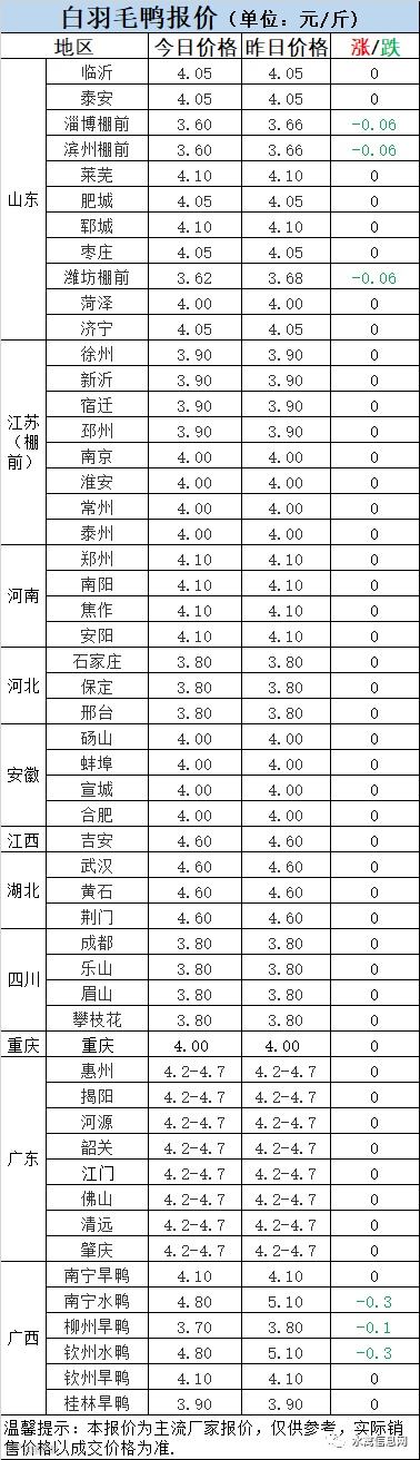2:南方活禽区域毛鸭报价走弱,今晚广东报稳,局部仍有小反弹,广西毛鸭继续下滑。