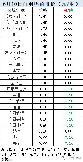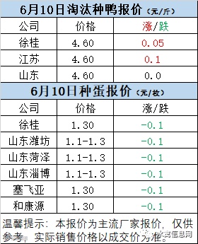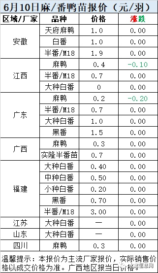 一、6月9日晚至6月10日 白羽肉鸭报价