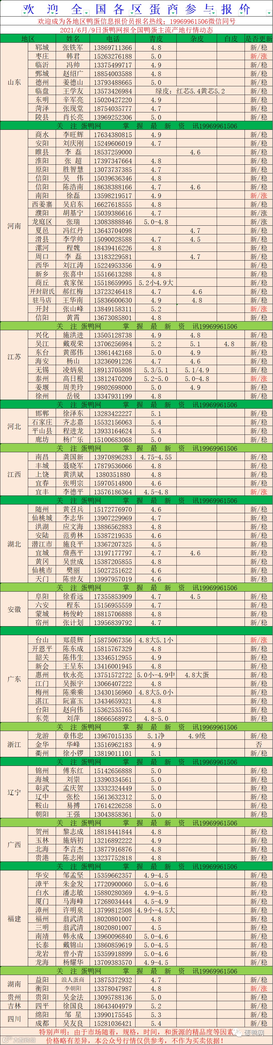 2021年6月9号鸭蛋报价