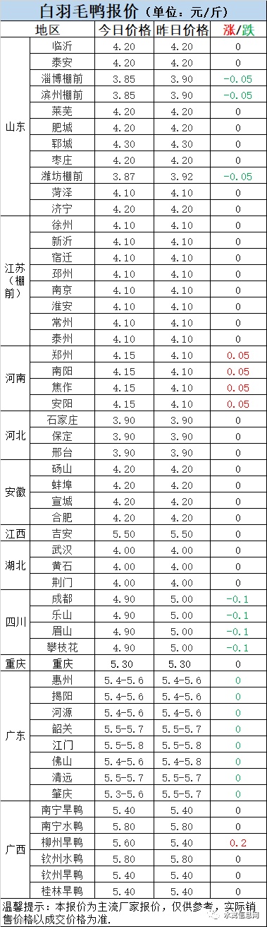 2:南方活禽区域,连张两日后,已到清明,市场弱势持稳。广东市场鸭今晚报价稳定为主,局部实际成交开始下滑。广西价格洼地连续反弹。