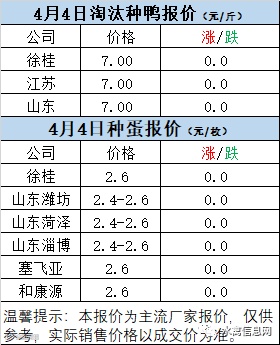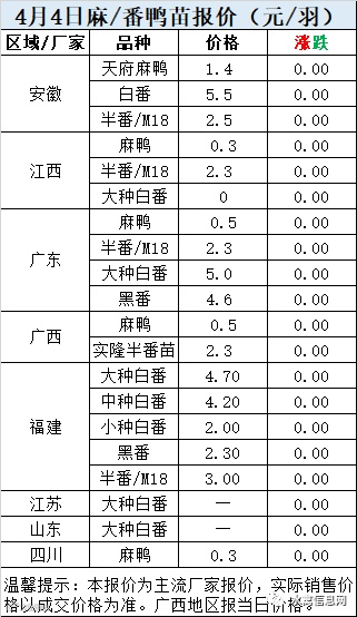 一、4月3日晚至4月4日 白羽肉鸭报价