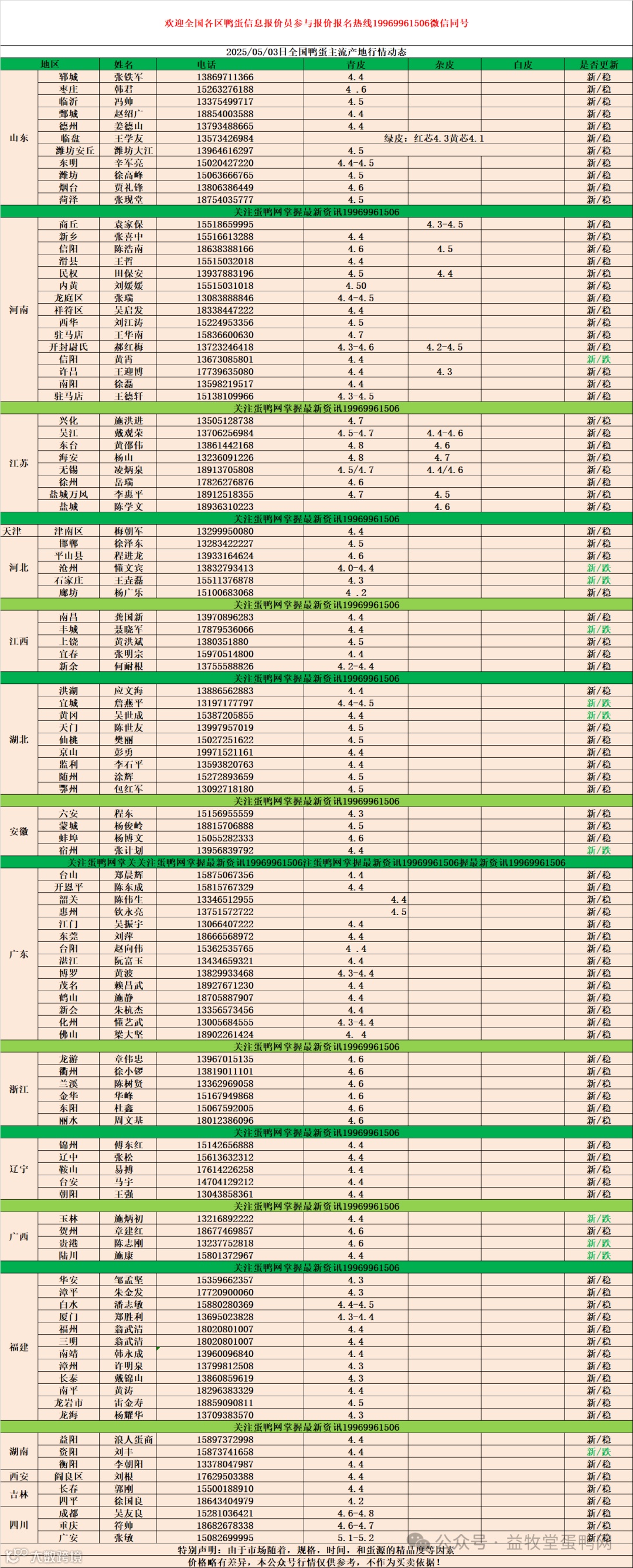淘汰鸭:10.5-10.0元/斤淘汰鸭价格受毛色,体重,品种等影响的变化较快。
