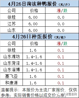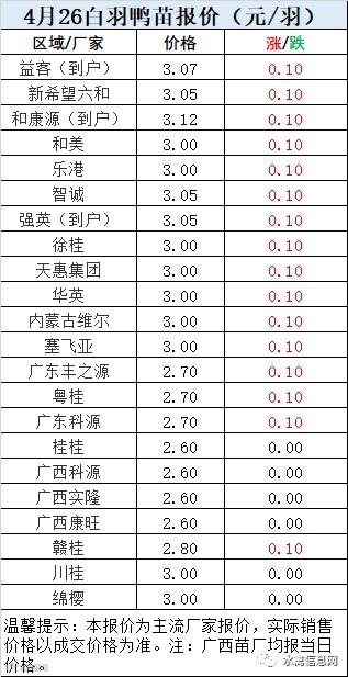 一、4月25日晚至4月26日 白羽肉鸭报价