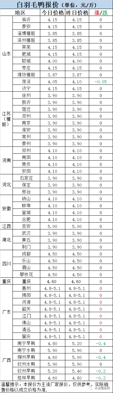 2:南方活禽区域,五一鸭预备上市。广东市场出价暂时较乱,今晚整体报稳,实际成交仍有上升。广西旱鸭弱势下调。