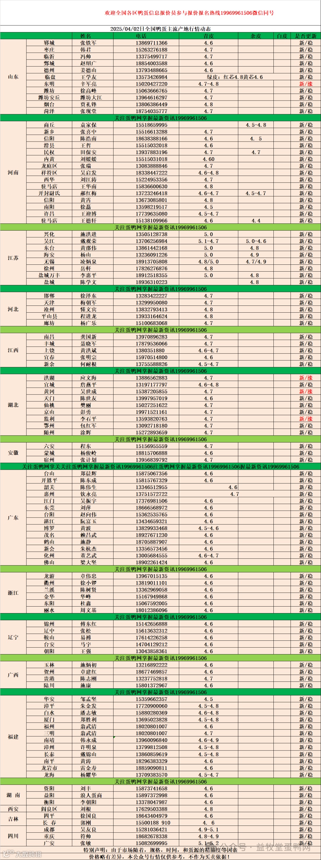 2025年4月2日商品鸭蛋报价 益牧堂水禽信息