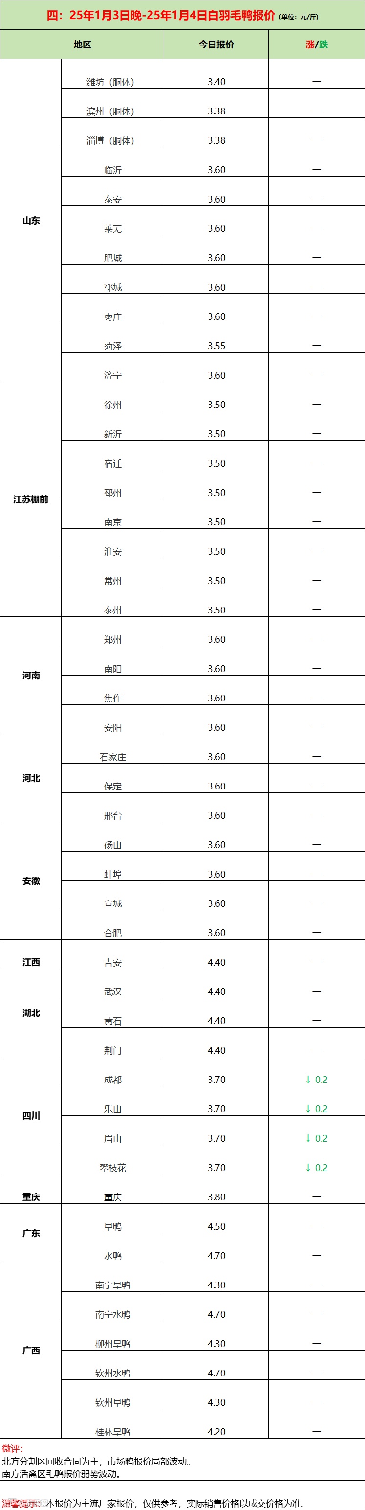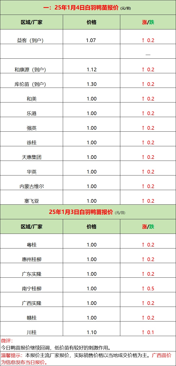 鸭苗底部反弹上涨;产品疲态不振!--2025年1月4日水禽行情简报 益牧堂水禽信息