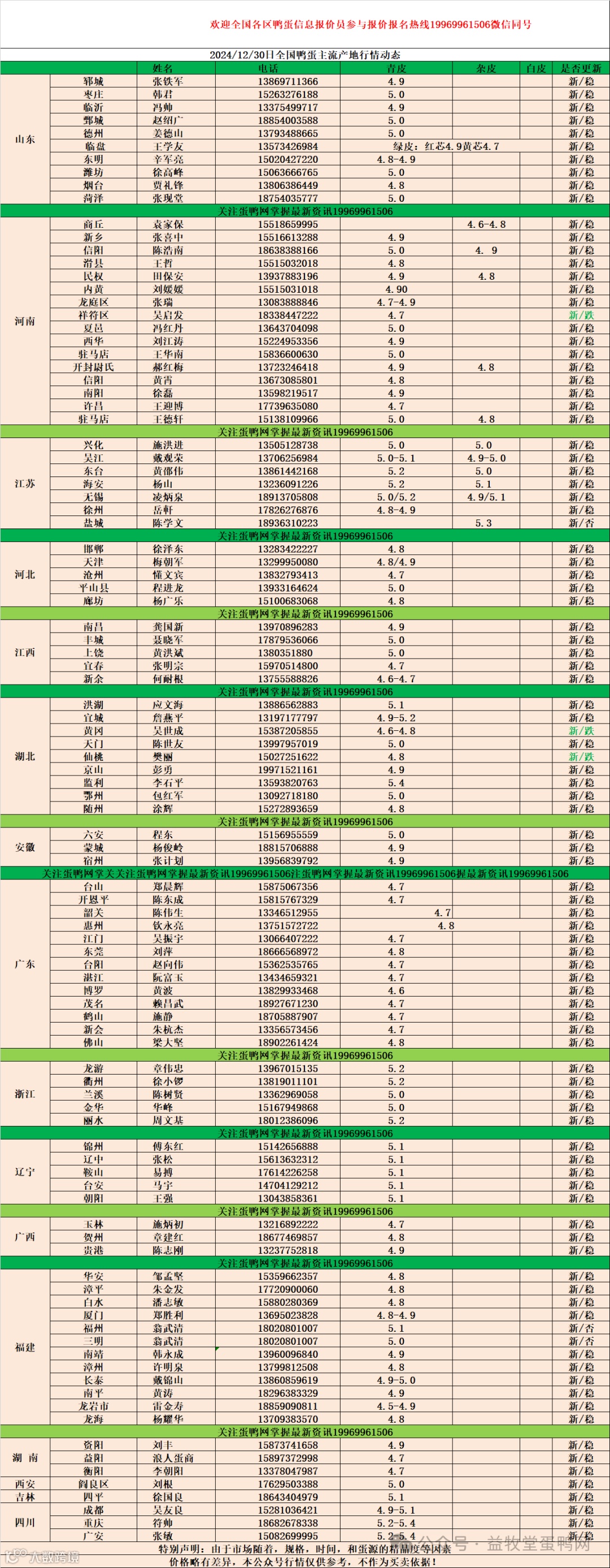 2024年12月30日商品鸭蛋报价