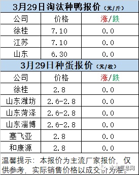 一、3月28日晚至3月29日 白羽肉鸭报价