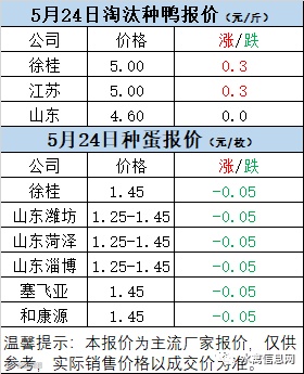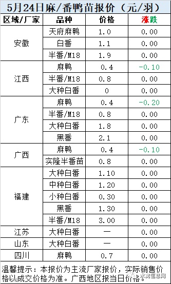 一、5月23日晚至5月24日 白羽肉鸭报价