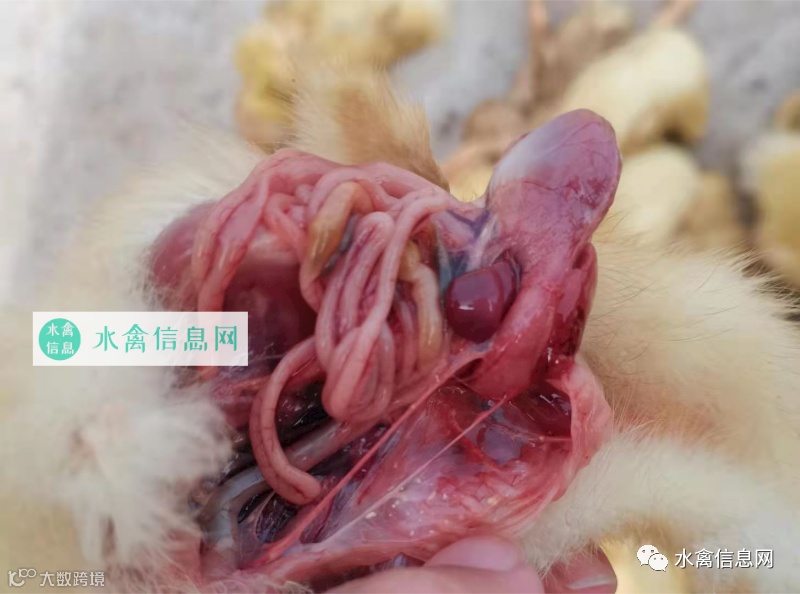 造成免疫抑制病的原因又很多,一是,种鸭由于感染病毒造成免疫抑制病或者吃了被霉菌毒素污染的饲料,毒素累积一定程度,造成种鸭免疫抑制病,再通过种蛋垂直传播到雏苗身上,这样的话,鸭苗孵化出来就会有免疫抑制病,像这样的鸡苗,来了解剖发现,可能就有肌胃炎症和肠道问题,3-4日龄瘫鸭增多,过了7-8天,发现卵黄囊未被吸收的情况。