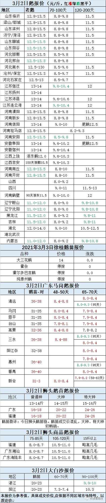 2021年3月02日鹅苗价格