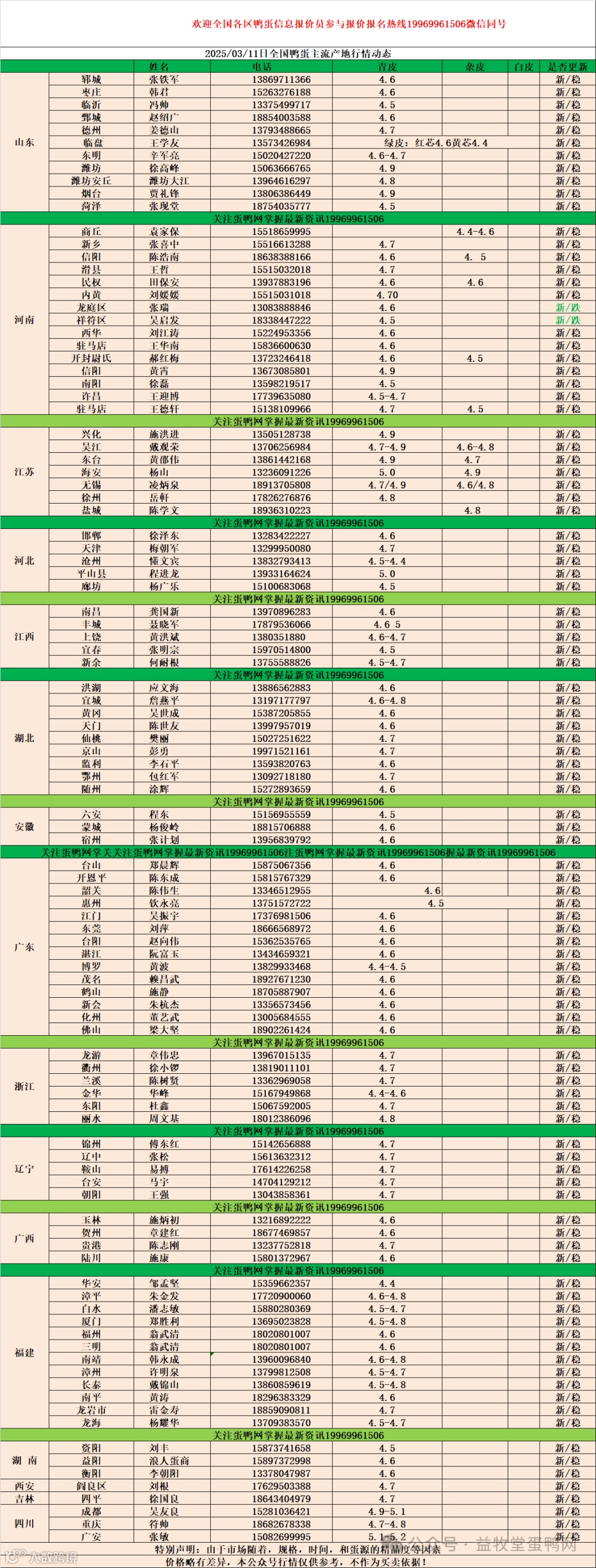 2025年3月11日商品鸭蛋报价 益牧堂水禽信息