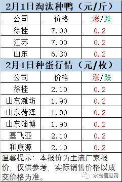 一、1月31日晚至2月1日 白羽肉鸭报价