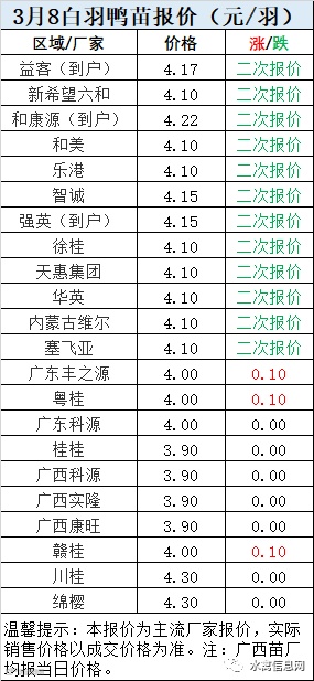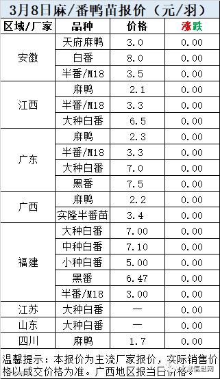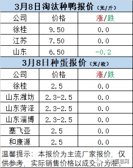 一、3月7日晚至3月8日 白羽肉鸭报价