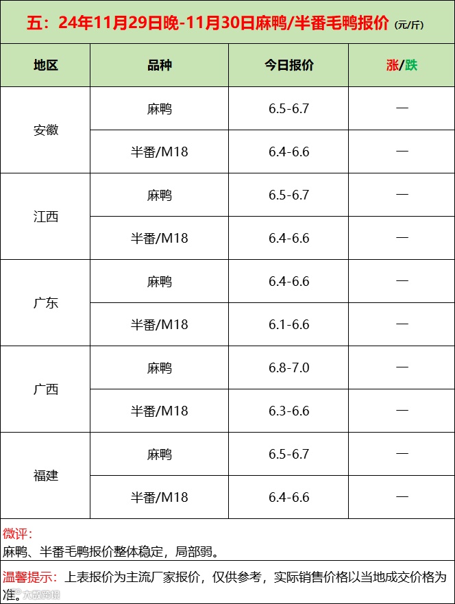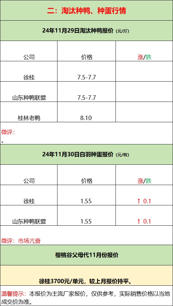 苗稳蛋涨,活禽下滑!--2024年11月30日水禽行情简报 益牧堂水禽信息