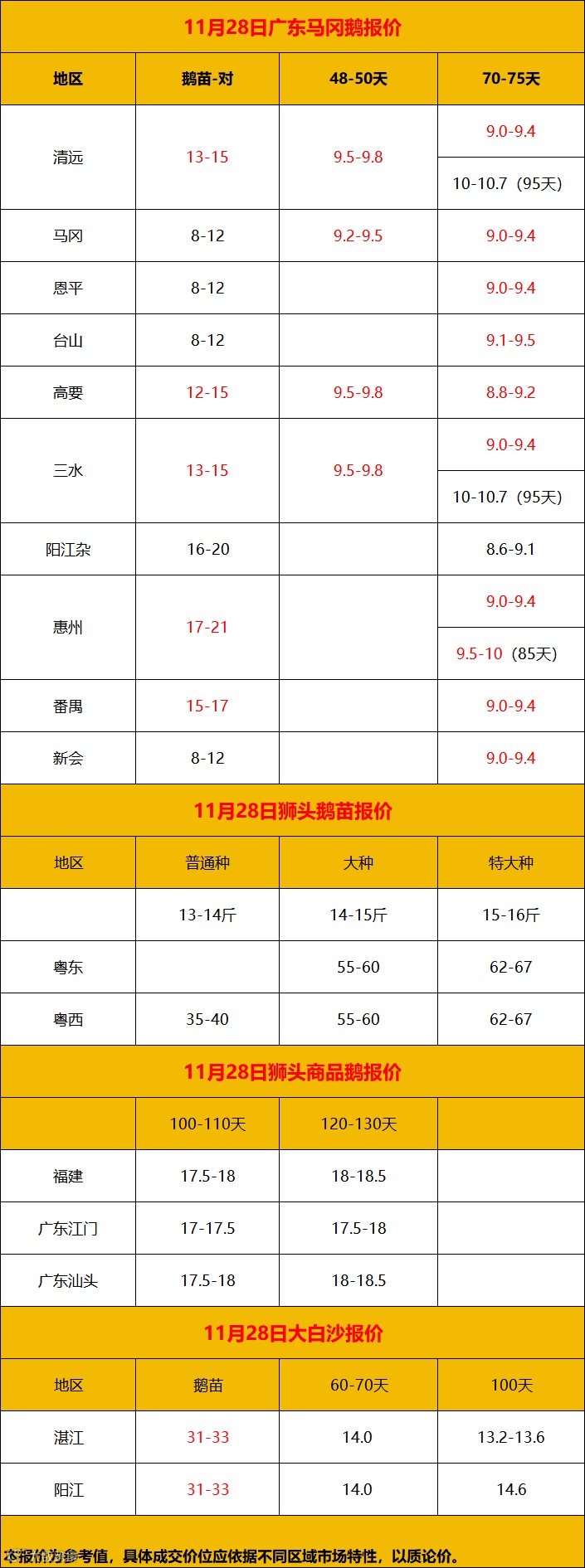 2024年11月29日鹅价快报