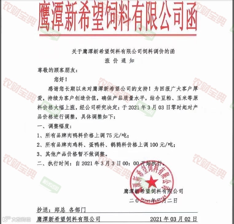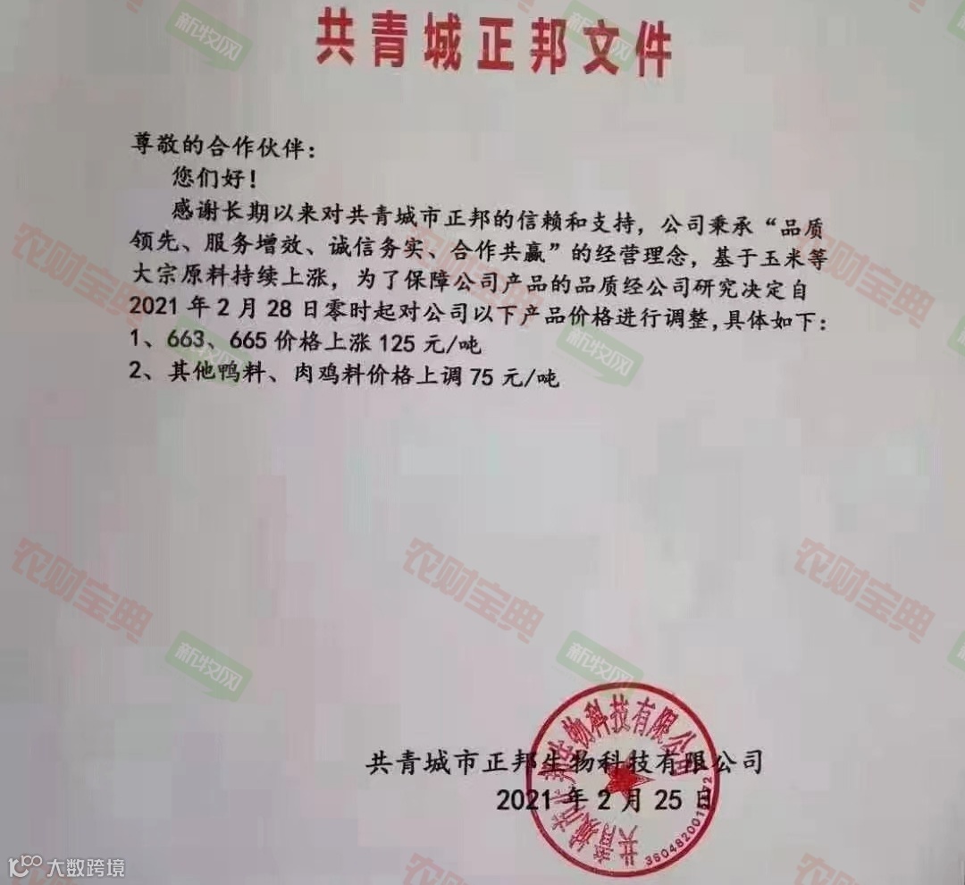 新希望、正邦、海大等多家饲料企业宣布饲料涨价