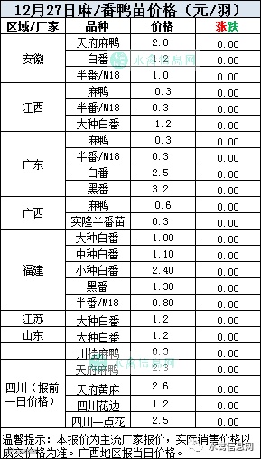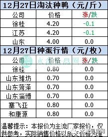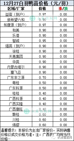 一、2020年12月27日白羽鸭苗报价;
