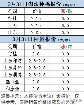 一、3月31日白羽鸭苗报价