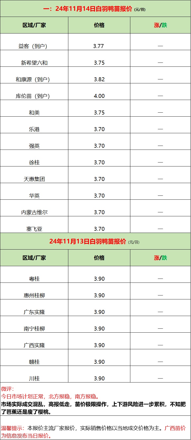 高报低走,混乱成交!--2024年11月14日水禽行情简报