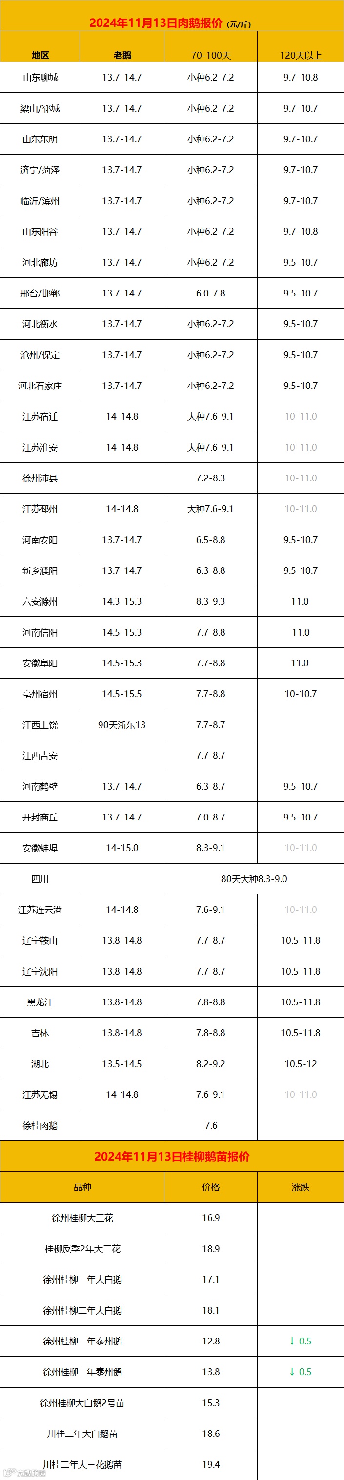 2024年11月13日鹅价快报
