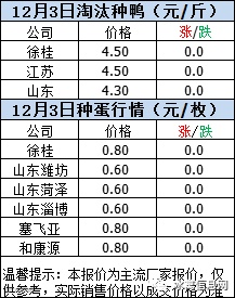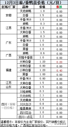 一、2020年12月3日白羽鸭苗报价;