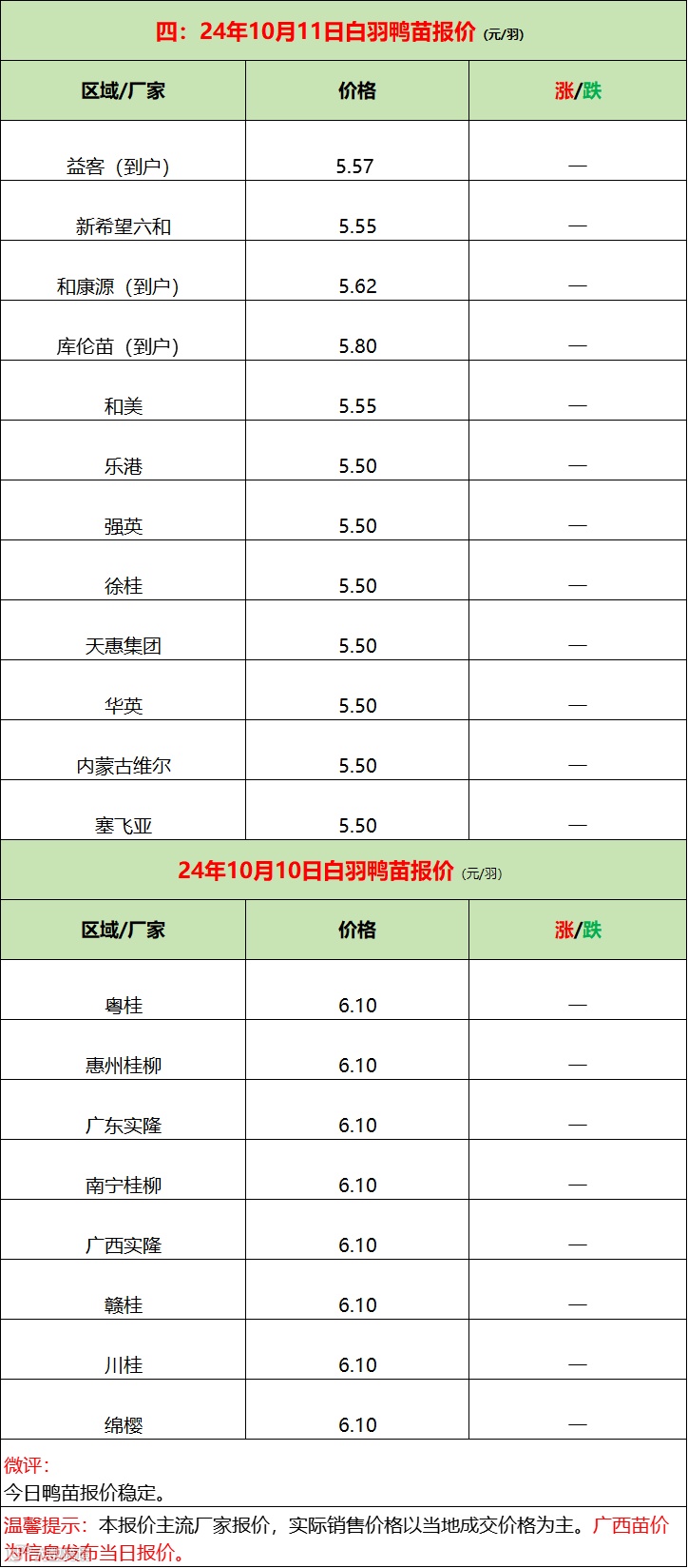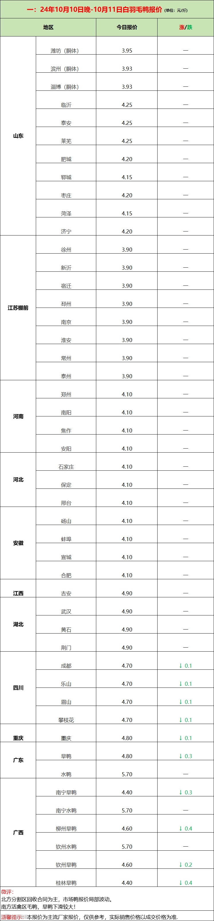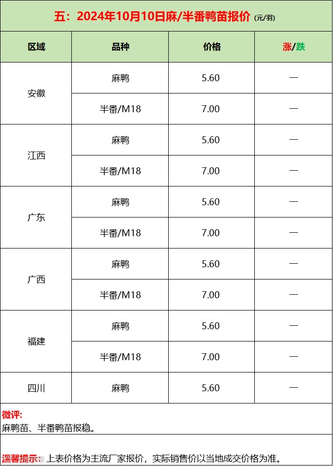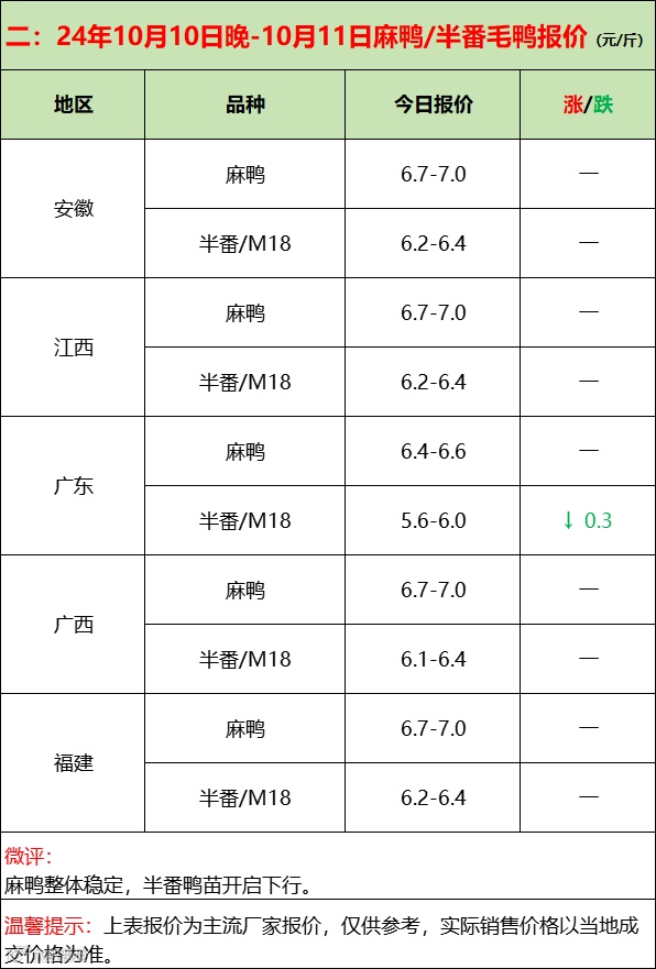 苗蛋强稳,活禽下行,产品加速抛货!--2024年10月11日水禽行情简报