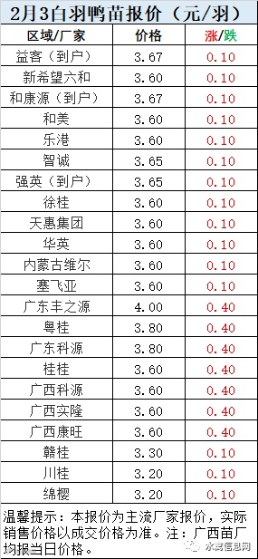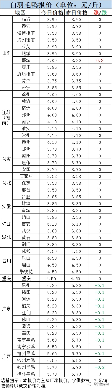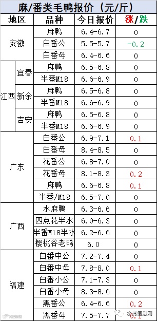 明日:麻鸭报价上涨0.1元/羽、半番苗报价上涨0.2元/羽。