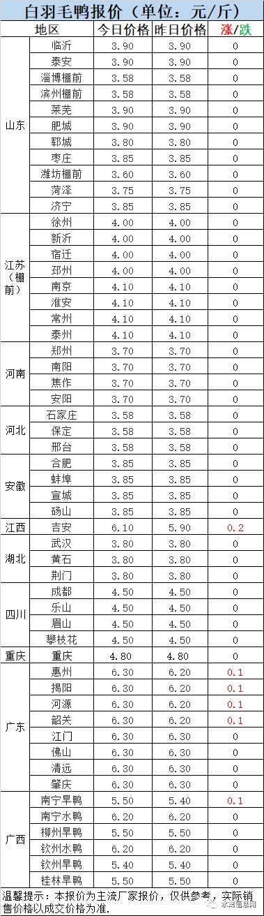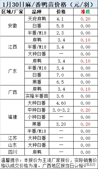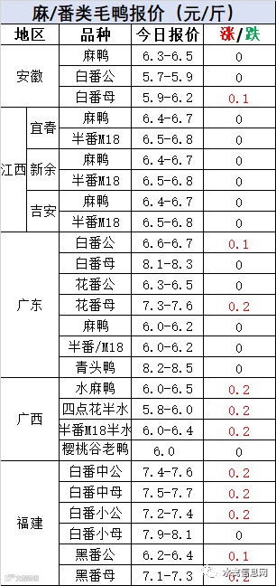 明日:麻鸭报价上涨0.1元/羽、半番苗报价稳定。