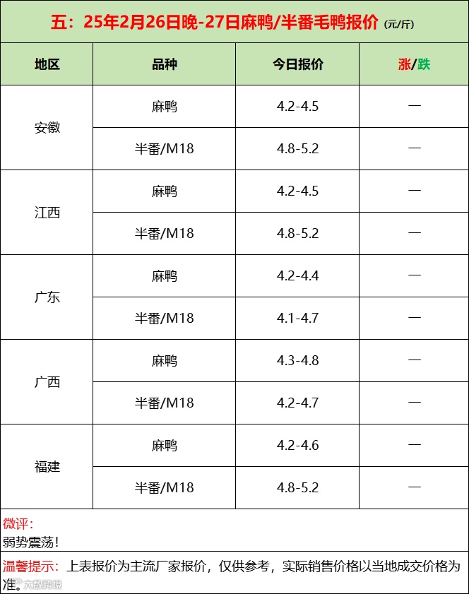 2025年2月27日水禽行情简报 益牧堂水禽信息