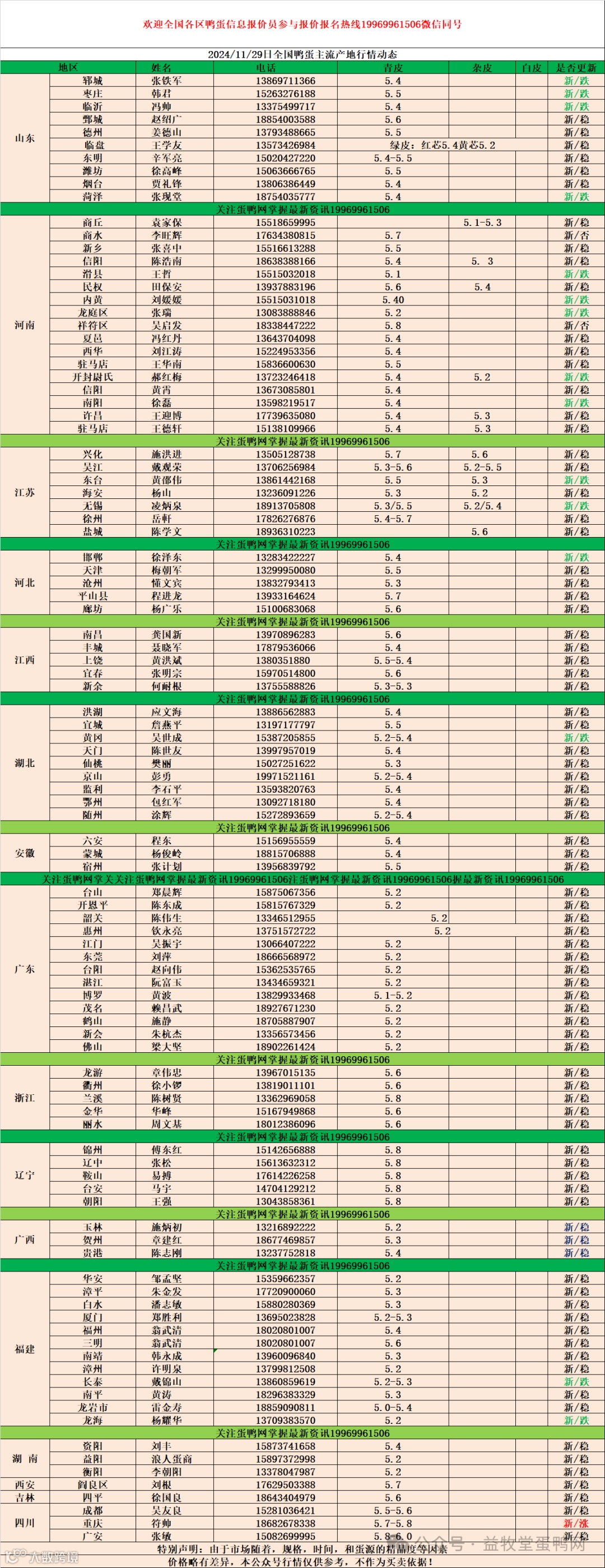 11月29日:开产至10个头4.0元,10个至9个头4.5元,9个头至8个头5.0