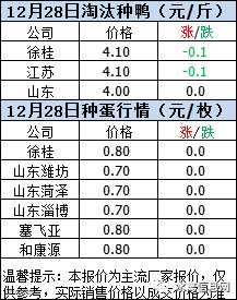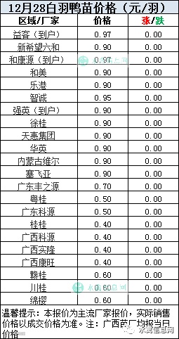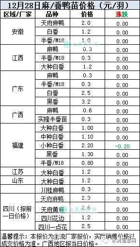 一、2020年12月28日白羽鸭苗报价;